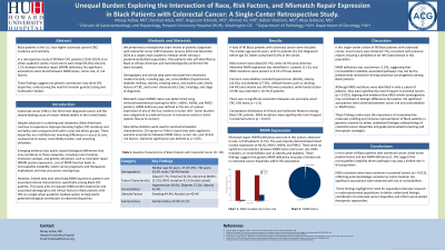 Black patients in the United States face disproportionately high rates of colorectal cancer (CRC) incidence and mortality. Biological and environmental differences, including mismatch repair (MMR) expression, may contribute to these disparities. However, data examining MMR patterns and risk factor profiles in this population remain limited.