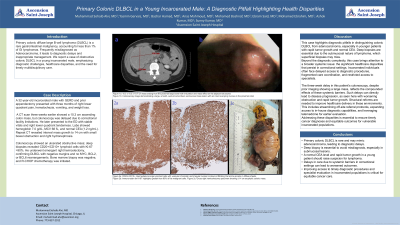Primary colonic diffuse large B-cell lymphoma (DLBCL) is a rare gastrointestinal malignancy, accounting for less than 1% of GI lymphomas. Frequently misdiagnosed as adenocarcinoma, it leads to diagnostic delays and inappropriate management. We report a case of obstructive colonic DLBCL in a young incarcerated male, emphasizing diagnostic challenges, healthcare disparities, and the need for timely multidisciplinary care.