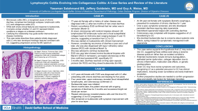 We retrospectively reviewed clinical and histopathologic data from three adult patients diagnosed with LC and CC at some point in time during their medical history, and who slod underwent serial colonoscopies with biopsies. We assessed clinical presentation, histologic features, treatment response, and evolution of LC to CC over time.