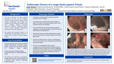 The rise in bariatric and other surgical procedures has led to an increased incidence of gastrointestinal fistulas. While surgical management was initially the standard of care, endoscopic therapies have since emerged, offering improved outcomes. However, endoscopic fistula closure remains particularly challenging, especially in cases with large defects. We present the successful closure of a remarkably large gastro-gastric fistula in a patient with a history of gastric bypass surgery.