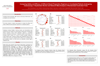 In constipated patients, Probiotic 14d + NaP showed the highest efficacy for adequate bowel preparation, while Senna + MgSO4 was least effective. Additionally, 3L PEG + 3d-Lin reduced abdominal pain compared to 4L PEG, with comparable rates of other adverse effects across bowel preparation regimens.
