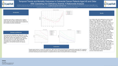 Colorectal cancer (CRC) is a leading cause of death in adults ≥ 45 years and often coexists with iron‐deficiency anemia (IDA), yet national mortality trends for patients with both conditions are poorly characterized.