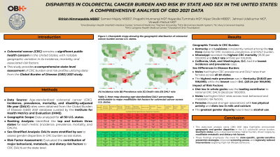Colorectal cancer (CRC) remains a significant public health concern in the United States, with notable geographic variation in its incidence, mortality, and associated risk factors. This study provides a comprehensive state-level assessment of CRC burden and risk profiles utilizing data from the Global Burden of Disease (GBD) 2021 study.