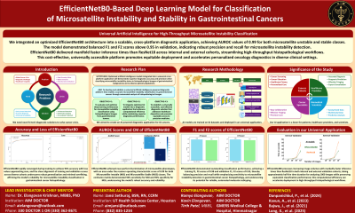 These findings establish EfficientNetB0 as a transformative tool for molecular subtyping in GI cancer histopathology. By automating MSI/MSS detection with perfect fidelity, this AI-driven approach eliminates subjectivity, expedites clinical workflows, and supports precision oncology. Universal deployment can democratize access to advanced molecular diagnostics, empowering clinicians to deliver tailored therapies and improve patient outcomes in GI malignancies.