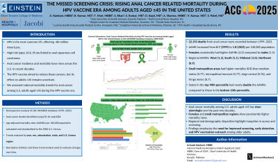 The mortality rate associated with anal cancer in the U.S. has shown an alarming rise over the past two decades. Significant demographic and geographic discrepancies are highlighted by the persistently higher mortality rates seen in females, regional disparities, and elevated rates in small metropolitan regions, highlighting the need for enhanced screening, aggressive management, and consistent surveillance for anal cancer in HPV patients at risk.