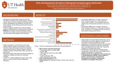 Introduction: Retrograde Cricopharyngeus Dysfunction (R-CPD) describes the inability of the cricopharyngeus muscle to relax, preventing burping. Current literature focuses on manifestation and treatment, but its etiology and associated risk factors are unclear. There is evidence that suggests early life onset and familial prevalence, but it is unknown whether this condition is inherited or acquired. Neonatal conditions have been linked with early esophageal motor dysfunction. The purpose of this study is to explore early-life experiences of those who have this condition, which may identify risk factors and thus improve early detection and prevention.