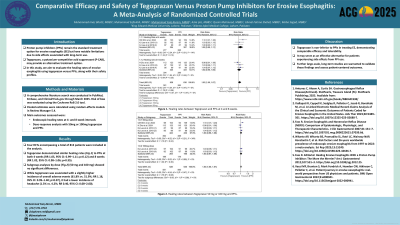 Muhammad Imaz Bhatti, MBBS1, Muhammad Safiullah, MBBS1, Muhammad Faiq Akram, MBBS2, Azka Ijaz, MBBS1, Qasim Mehmood, MBBS1, Ishmal Fatima Shahid, MBBS1, Maha Sajjad, MBBS1. P2797 - Comparative Efficacy and Safety of Tegoprazan vs Proton Pump Inhibitors for Erosive Esophagitis: A Meta-Analysis of Randomized Controlled Trials, ACG 2025 Annual Scientific Meeting Abstracts. Phoenix, AZ: American College of Gastroenterology.