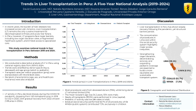 David Guevara-Lazo, MD1, Natalia R. Nombera Aznaran, MD2, Roxana M. Aznaran-Torres, MD, PhD3, Renzo S. Zeballos Gonzalez, 4, Jorge Garavito Renteria, MD5. P3793 - Trends in Liver Transplantation in Peru: A Five-Year National Analysis (2019–2024), ACG 2025 Annual Scientific Meeting Abstracts. Phoenix, AZ: American College of Gastroenterology.