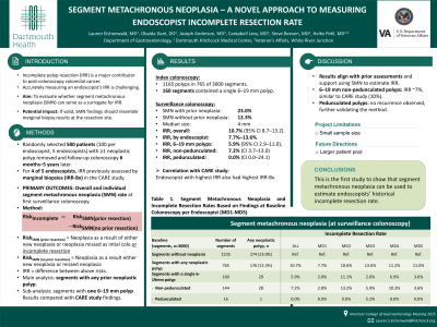 Lauren Eichenwald, MD1, Obaida Dairi, DO1, Joseph C. Anderson, MD2, Campbell Levy, MD1, Steven P. Bensen, MD1, Heiko Pohl, MD, MS1. P4811 - Segment Metachronous Neoplasia: A Novel Approach to Measuring Endoscopist Incomplete Resection Rate, ACG 2025 Annual Scientific Meeting Abstracts. Phoenix, AZ: American College of Gastroenterology.