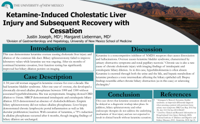 Justin M. Joseph, MD, Margaret Lieberman, MD. P6002 - Ketamine-Induced Cholestatic Liver Injury and Subsequent Recovery With Cessation, ACG 2025 Annual Scientific Meeting Abstracts. Phoenix, AZ: American College of Gastroenterology.