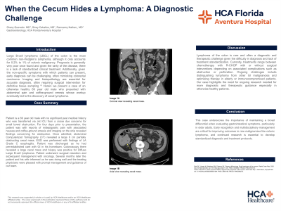 Lymphoma of the colon is rare and often a diagnostic and therapeutic challenge given the difficulty in diagnosis and lack of treatment standardization. Currently, treatments range between chemotherapy with R-CHOP with or without surgical interventions depending on associated complications such as obstruction or perforation.. Ongoing challenges include distinguishing lymphoma from other GI malignancies and optimizing therapy in elderly or immunocompromised patients1,2. Our case highlights the need for ongoing research needed for more diagnostic and therapeutic guidance especially in otherwise healthy patients.